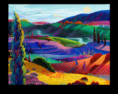 California dreaming on such a winter's day, a gentle breeze of warm air touching my hair, the sunrays travelling on my skin, the feeling of endless summer.  Under a sky of all colors, resting peacefully are the gracious rolling hills of all shapes and sizes, like a beauty contest of who's the prettiest of them all. This limited edition print on canvas is serene display of joy and delight.