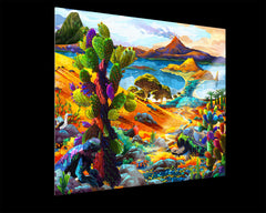 Redina's Metal Limited Editions are produced with ChromaLuxe technology for best display of a modern look, perfectionism, durability, detail and color accuracy. They come in multiple sizes to provide a perfect fit for any space in your home or office. The clarity and depth of brushwork and sculpted shapes of these paintings will draw you inside the unique journey through Redina's magical, colorful world. Edition information: (40”x50”) 50, (32”x40”) 95, (24”x30”) 125 and (20”x25”) 195.